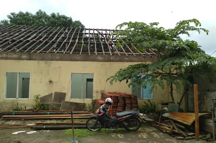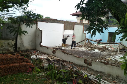 - membongkar struktur bangunan, termasuk dinding,plafon,atap, lantai, dan instalasi listrik,pipa-pipa,pintu jendela,closed,dll.